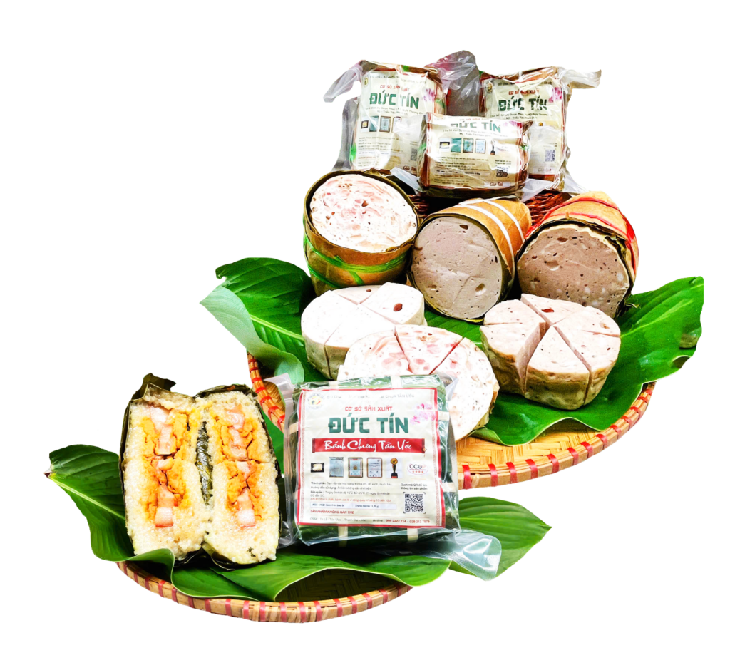 Bánh chưng Tân Ước là sản phẩm nổi tiếng thơm ngon nhất của cơ sở Đức Tín được khách hàng trong và ngoài nước biết đến. Để làm được một chiếc bánh chưng Tân Ước cần phải lựa chọn kỹ lượng các nguyên liệu, gồm gạo nếp, đỗ xanh và thịt lợn. Nhưng không phải ở đâu cũng đạt được sự tinh tế trong từng khâu, từng bước như bánh chưng Tân Ước.